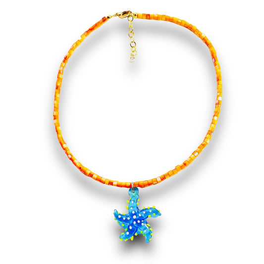 Blue Sea Star Necklace Glass